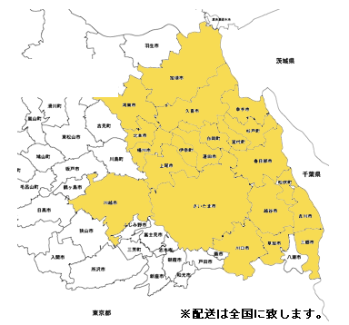 川越市、さいたま市、川口市、蕨市、加須市、春日部市、鴻巣市 上尾市、草加市、越谷市、戸田市、鳩ケ谷市、桶川市、久喜市 北本市、三郷市、蓮田市、幸手市、伊奈町、宮代町、白岡町 栗橋町、杉戸町、松伏町、吉川町